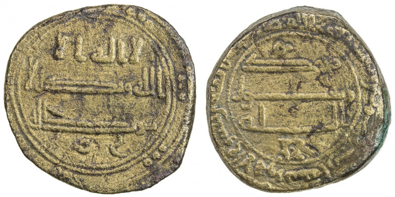 ABBASID: AE fals (4.82g), Suq al-Ahwaz, AH184, A-336, without any governor, type as TŸbingen-AM8 B5, light porosity, VF, RRR.