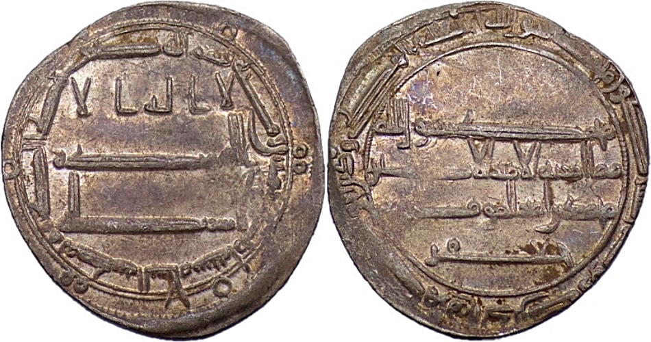 ABBASID: al-Rashid, 786-809, AR dirham (2.89g/ 26mm), Madinat al-salam (Bghdad), AH184, A-219.9. Very fine.