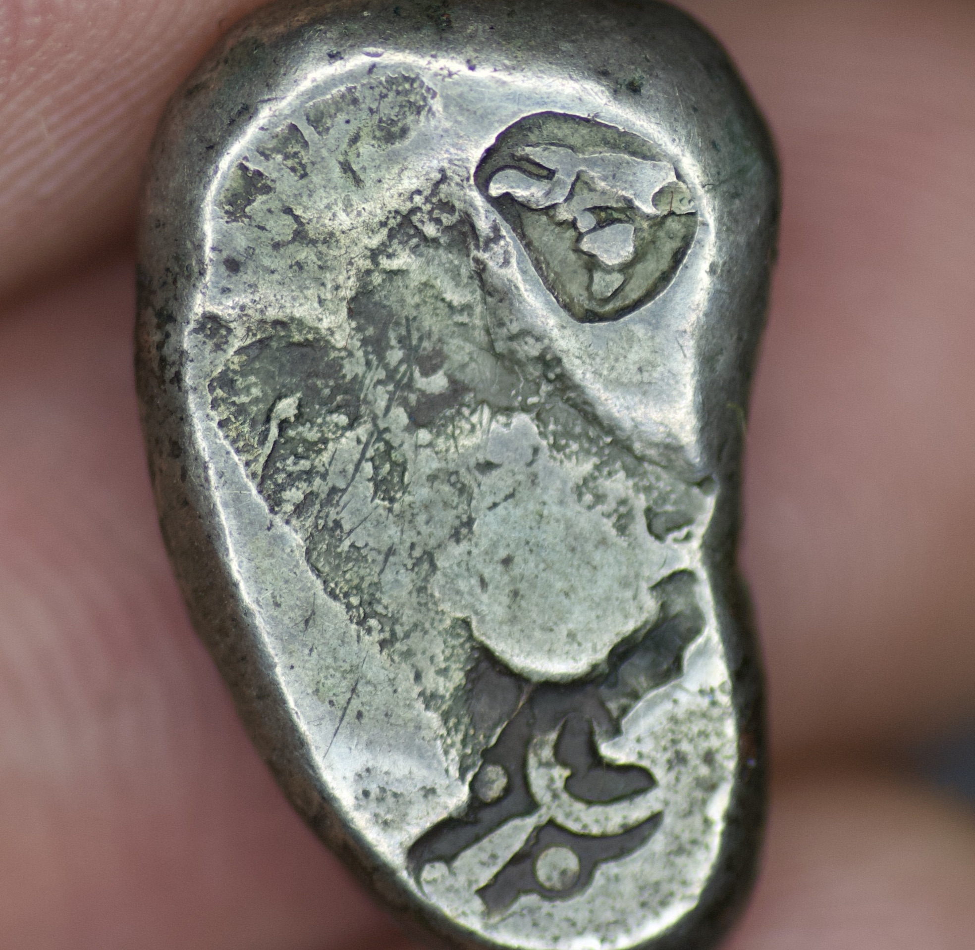 Achaemenid Persian Empire. AR Siglos; Time of Xerxes II to Artaxerxes III, c. 420-350 BC (5.57g/ 18mm). Carradice-Type IVa.Persian king or hero r., in kneeling-running stance, holding bow and dagger, quiver at shoulder. / Incuse punch. Carradice Type IV. Bankers’ marks on obverse and reverse. Choice very fine. Beautiful toning.