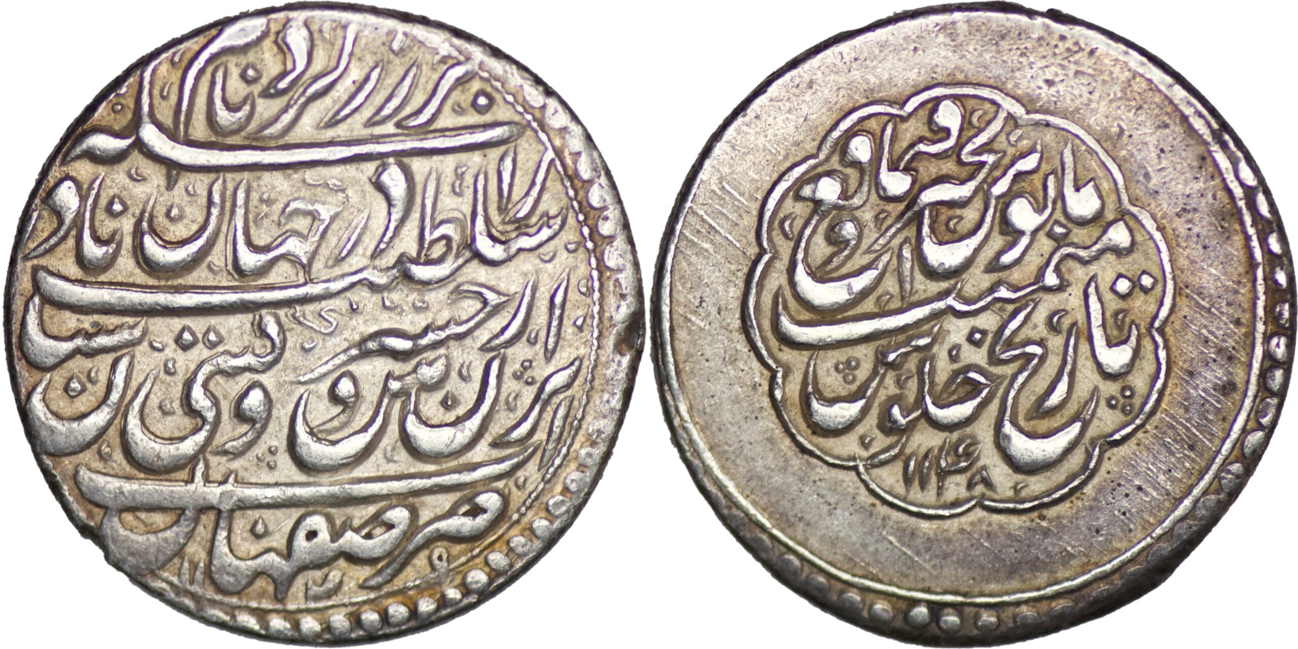 Afsharid. Nadir Shah (1735-1747 AD) as king. AR Abbasi, Isfahan, AH 1148