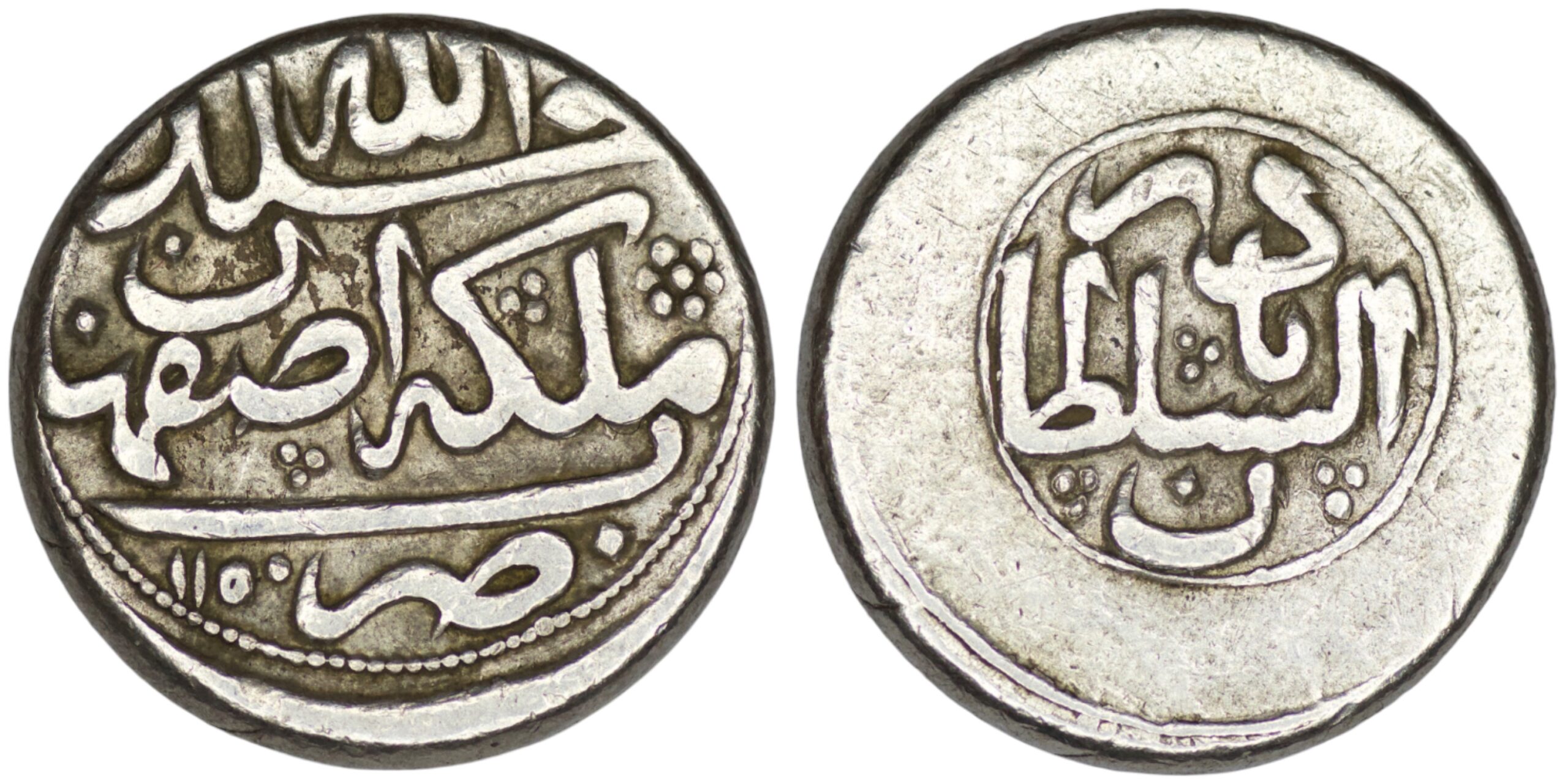 Afsharids. Nadir Shah as king (AD 1736-1747). AR 6 Shahi (6.89g/ 18mm). Isfahan. AH 1150. Album 2747. Extremely fine.