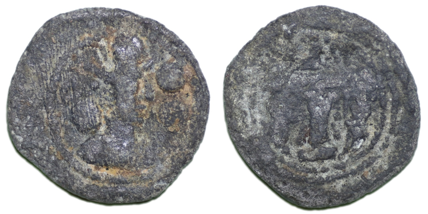 Ancient SASANIAN EMPIRE: Shahpur II, 309-379, lead pashiz (2.89 g/ 17mm), NM, ND, G-—, standard design, , Fine