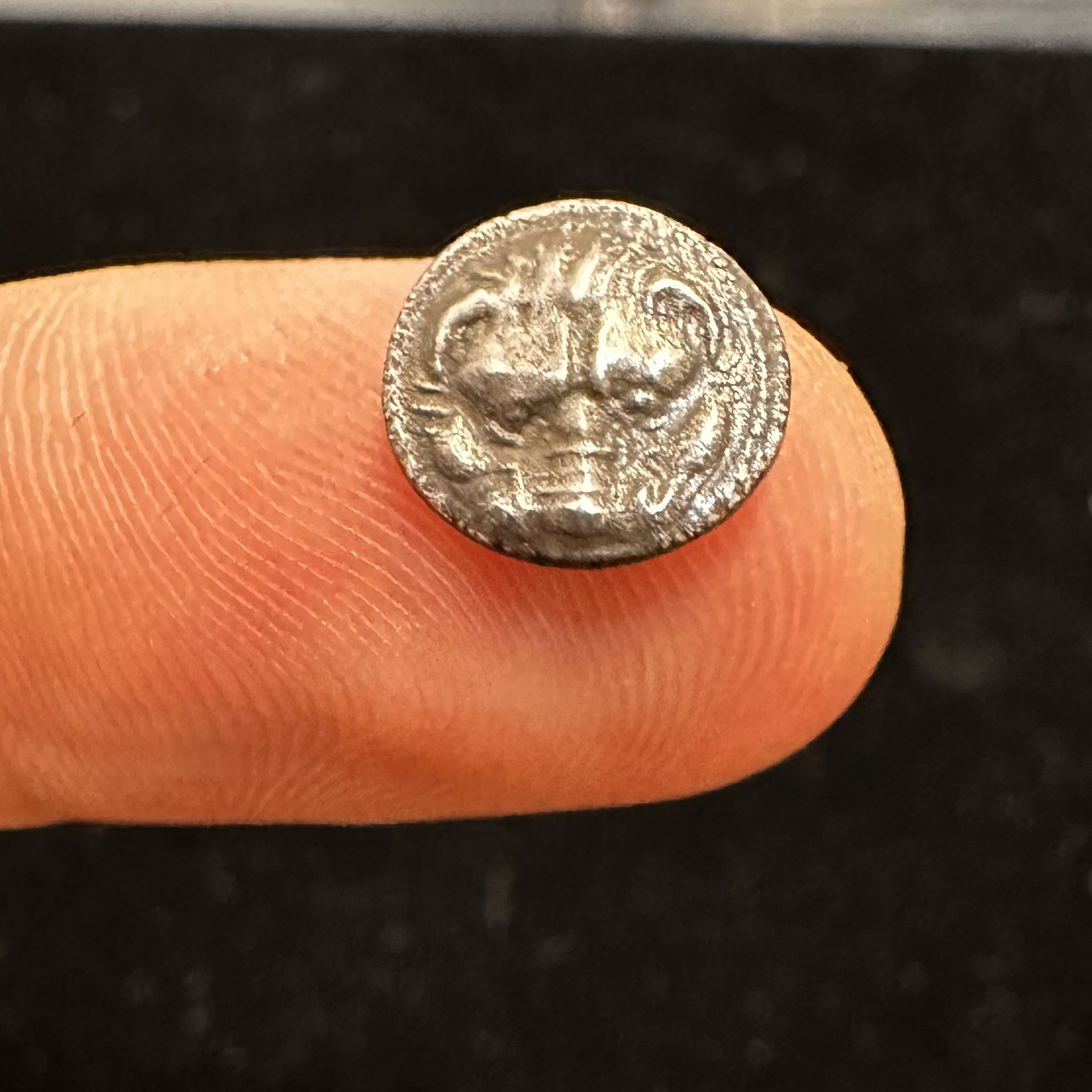 Bruttium, Rhegion. (Circa 415/0-387 BC). AR Litra. (0.75g/ 10mm). Facing lion’s scalp/ PH within olive sprig. SNG ANS 670–4. Extremely fine, toned.