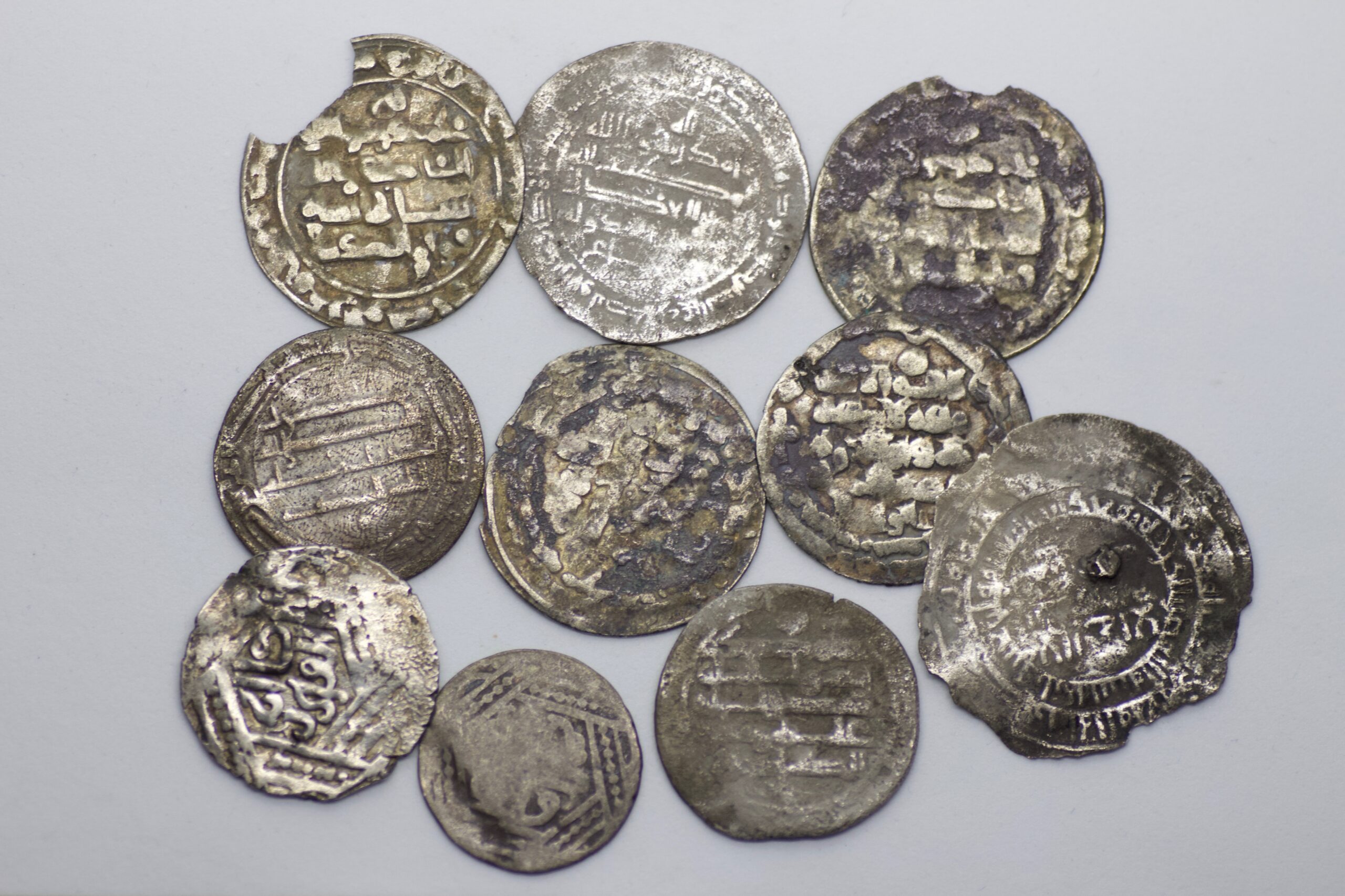 Group lot of 10 AR Islamic Drachms, various types and mints including Abbasid, Buwayhid and Ilkhans. Condition fine to very fine.