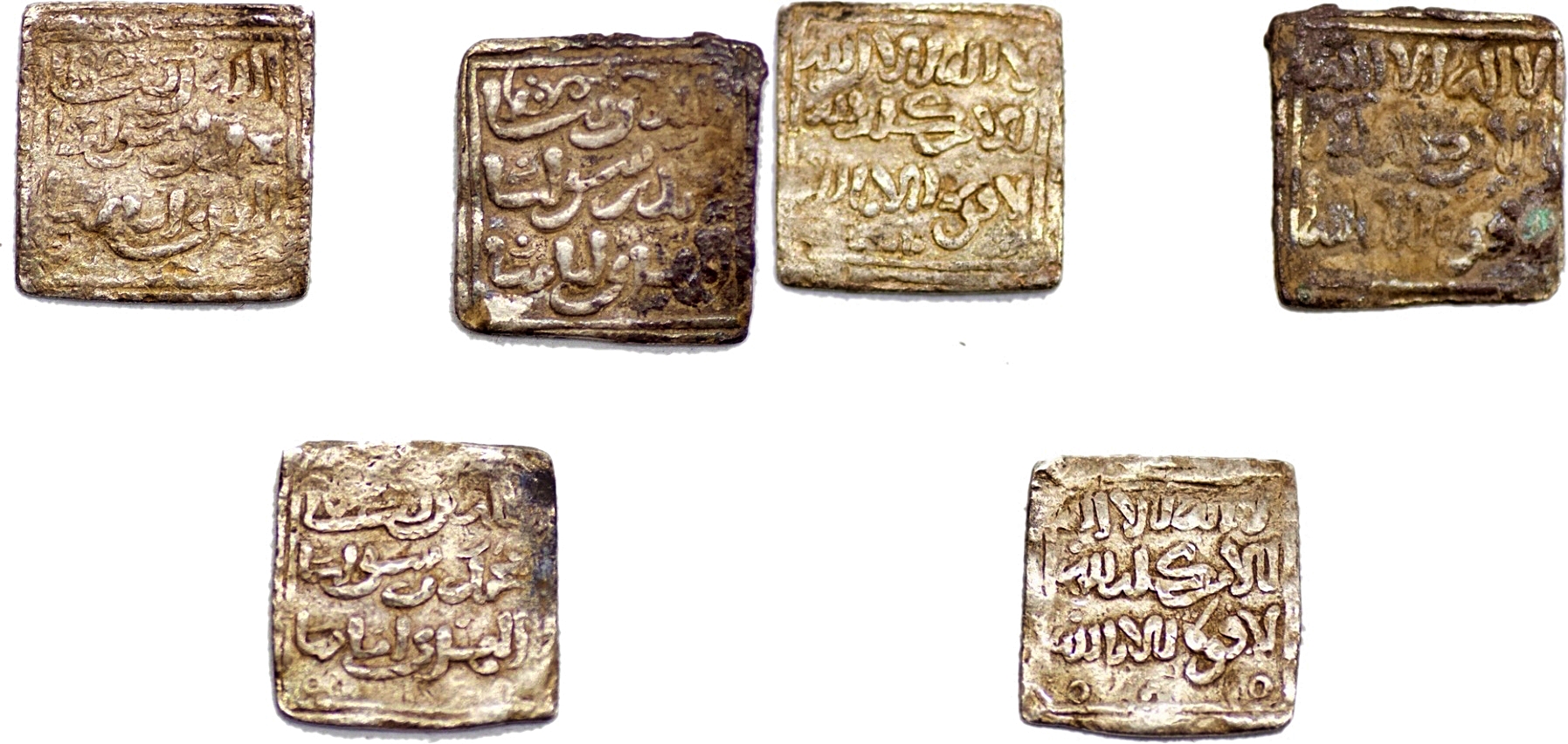 ALMOHAD: Anonymous, Group lot of 3 AR Square Dirham, Ishbiliya (Sevilla), No date, A-497, H-1106, Very fine.