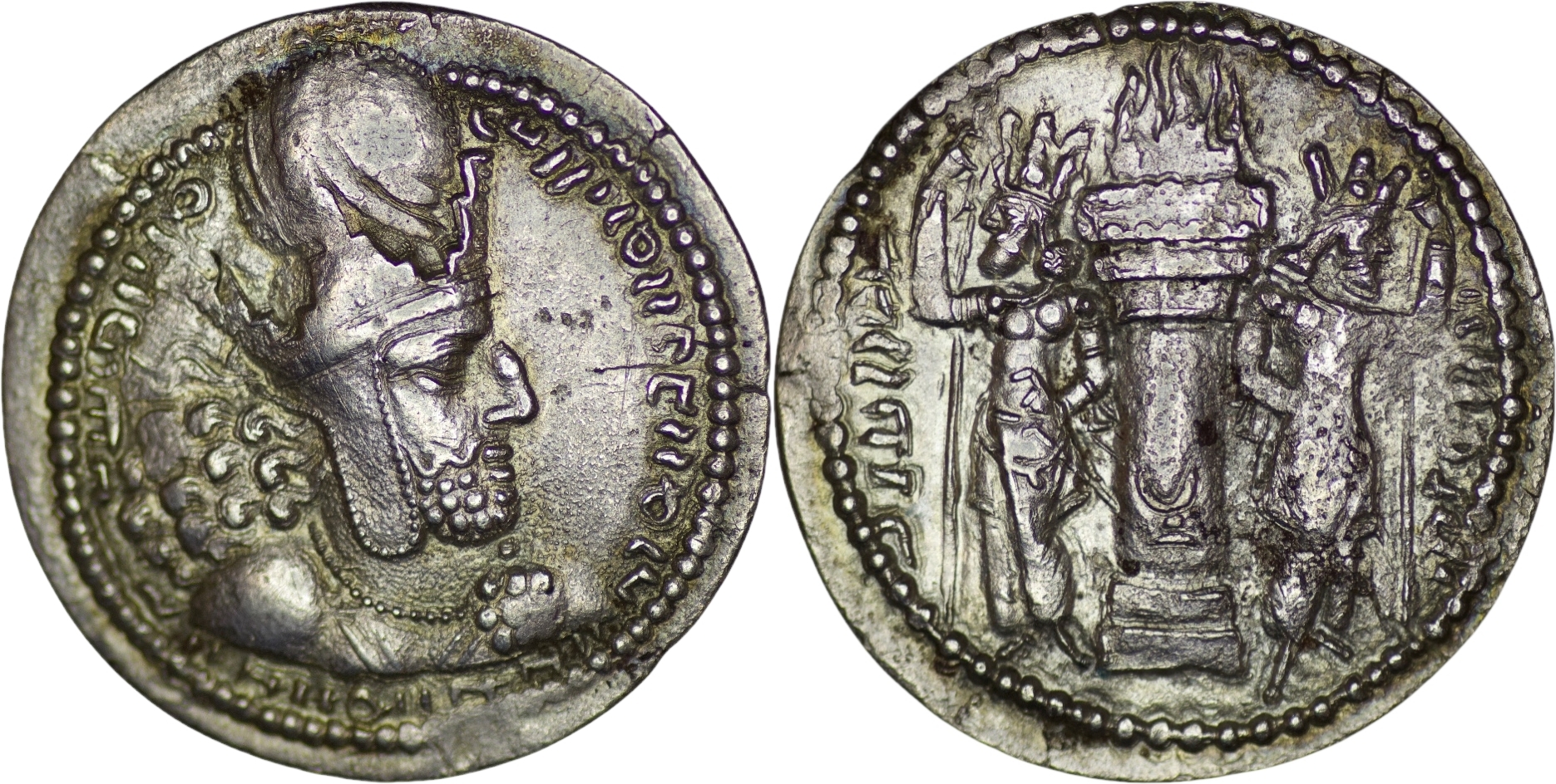 Hephtalite. Anonymous (ca. 486-490). AR Drachm (). G-, derived from Göbl-171 of Peroz, with turret left and crescent right as part of the crown, blundered legend left and imitative DA mint signature (for Darabjird) to right on reverse, Pahlavi “M” to left. These drachms closely imitate issues of the Sasanian Peroz (457-484), both his second type (struck circa 460-474) and the abundant third type (474-484). Hephthalite invasions into Sasanian lands started about 474, again about 480, finally in 484, when Peroz was killed and most of Khorasan brought under Hephthalite control. Sasanian coinage at Marw and Herat ceased, not to be resumed after those cities were retaken by the Sasanians under Kavad I about 512. Peroz was ransomed during his defeat in the second battle about 482 for “30 mule packs of silver drachms”, which must have become the standard circulation in Hephthalite territories, with large numbers found in Tokharistan countermarked with various local symbols. The common Hephthalite coinage of their own were imitations of Peroz type three, with four large pellets added to the obverse margin (Göbl-287/289, including several variants), most of which bear the mint name boxlo in the Baktrian script on the reverse in the standard position at the far right. We do not know when this series was introduced, but would guess at some time during the first right of Kavad I (488-497).A significant group of previously unrecognized type has recently been brought to market. The drachms are relatively close copies of Peroz drachms, both his second type (Göbl-171) and third type (Göbl 174 & 176). They lack the four large pellets in the obverse margin. The obverse may have no legend whatsoever, or a crude copy of the Peroz legend or completely meaningless script. The reverse may have the Pahlavi letter “M” as on G-171 and 176, often hopelessly engraved; some retain a very crude imitation of a Pahlavi mint signature. This type would have been introduced soon after the 484 conquest, perhaps after the ransom supply was dispersed and now coins had to be minted. An extremely rare example of this type bear a large star to the left of the king’s crown, first introduced by Kavad I for his first type in 488. The rarity of the star type suggests that the production of this series ended not long afterwards, probably discontinued during the early 490s. Thus this series was only briefly struck only circa 486-490+.We should mention that a few examples of this newly reported type have in fact been known for a long time, published either as Sasanian Imitations or as poorly engraved examples of Peroz’s normal type 2 and type 3 drachms.