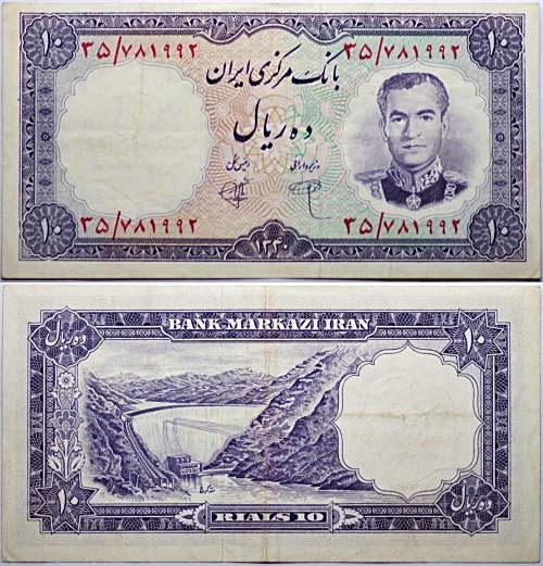 IRAN. 10 Rials. 1961 (AH 1340). “Mohammad Reza Shah Pahlavi”. National Bank. Signatures: Shoali and Kashani.