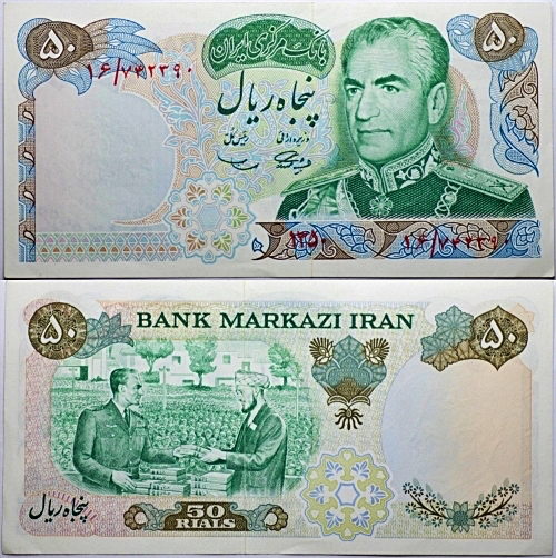 Iran 50 Rials 1971 CommemorativeP# 97; № 16/742390; “2500th Anniversary of Persian Empire”. “Mohammad Reza Pahlavi”.
