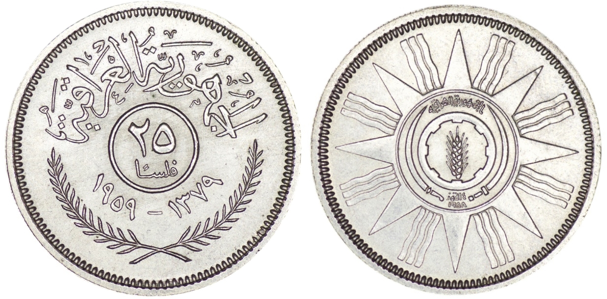 Iraq. Silver 25 Fils. AH 1379/ AD 1959