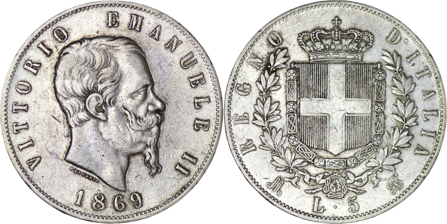 Italy. Vittorio Emanuele II (1861-1878). Silver 5 Lire. 1870