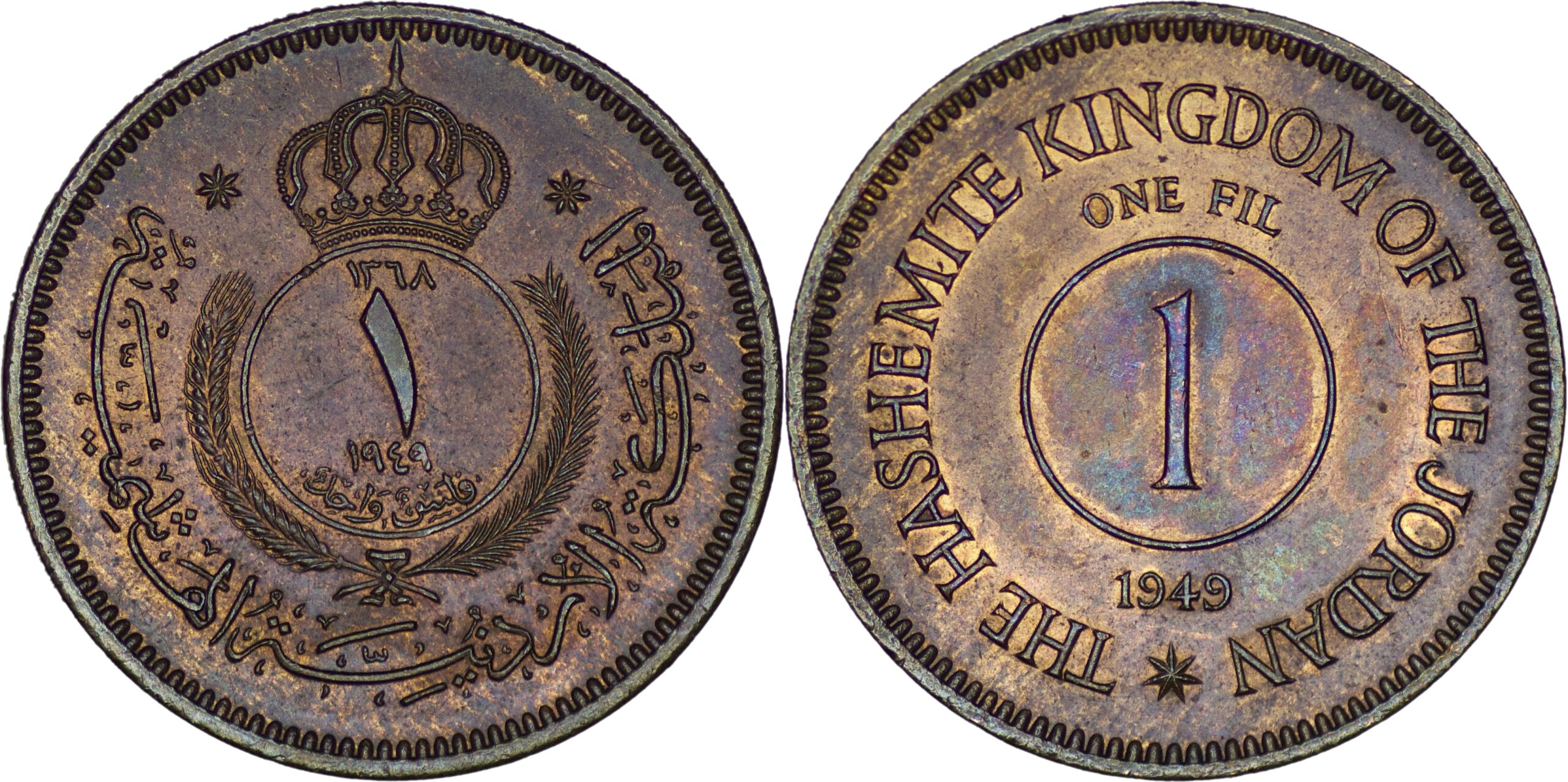 Jordan. Abdullah I bin Al-Hussein (1946-1951). 1 Fils. 1949