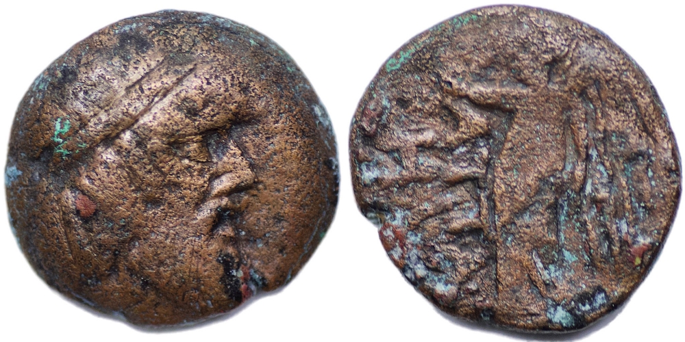 KINGDOM of CHARACENE. Attambelos I. 48/7-24 BC. Æ unit (3.30 g, 15mm ). Diademed head right / Nike Standing, letter to the left ATTA H. Choice VF / F.