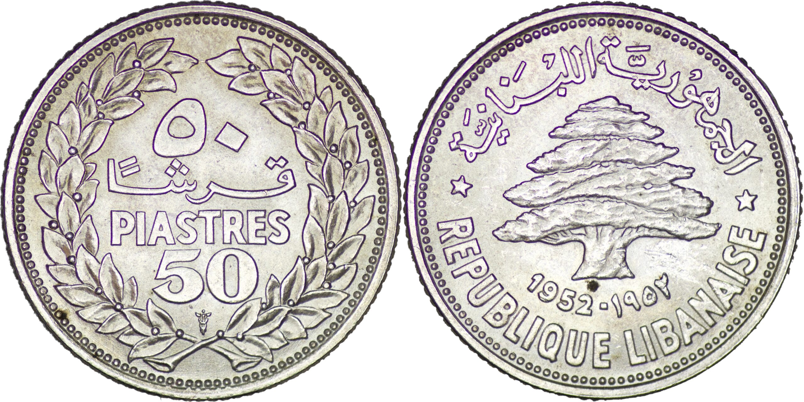 Lebanon. Silver 50 Piastres (Qirsh). 1952. UNC