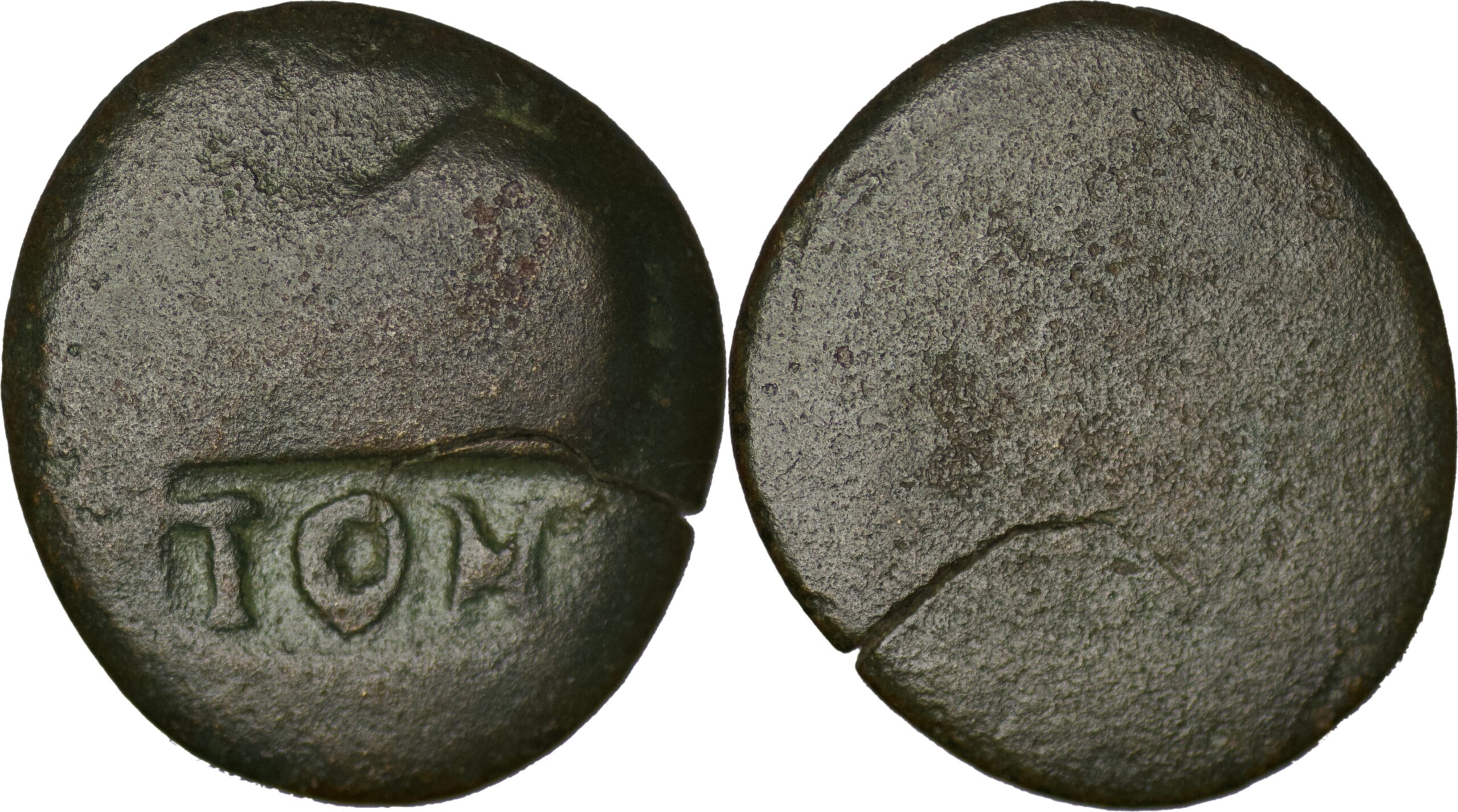 Moesia. Istros. Tomis.(1st-2nd century AD), Æ (2.65g/ 19mm). Overstruck on an uncertain type. Countermark: TOM within incuse rectangle./ Blank. For countermark: Howgego 567. Ex Ex Numismatik Naumann Auction 100 Lot 1197. Fine. Rare.