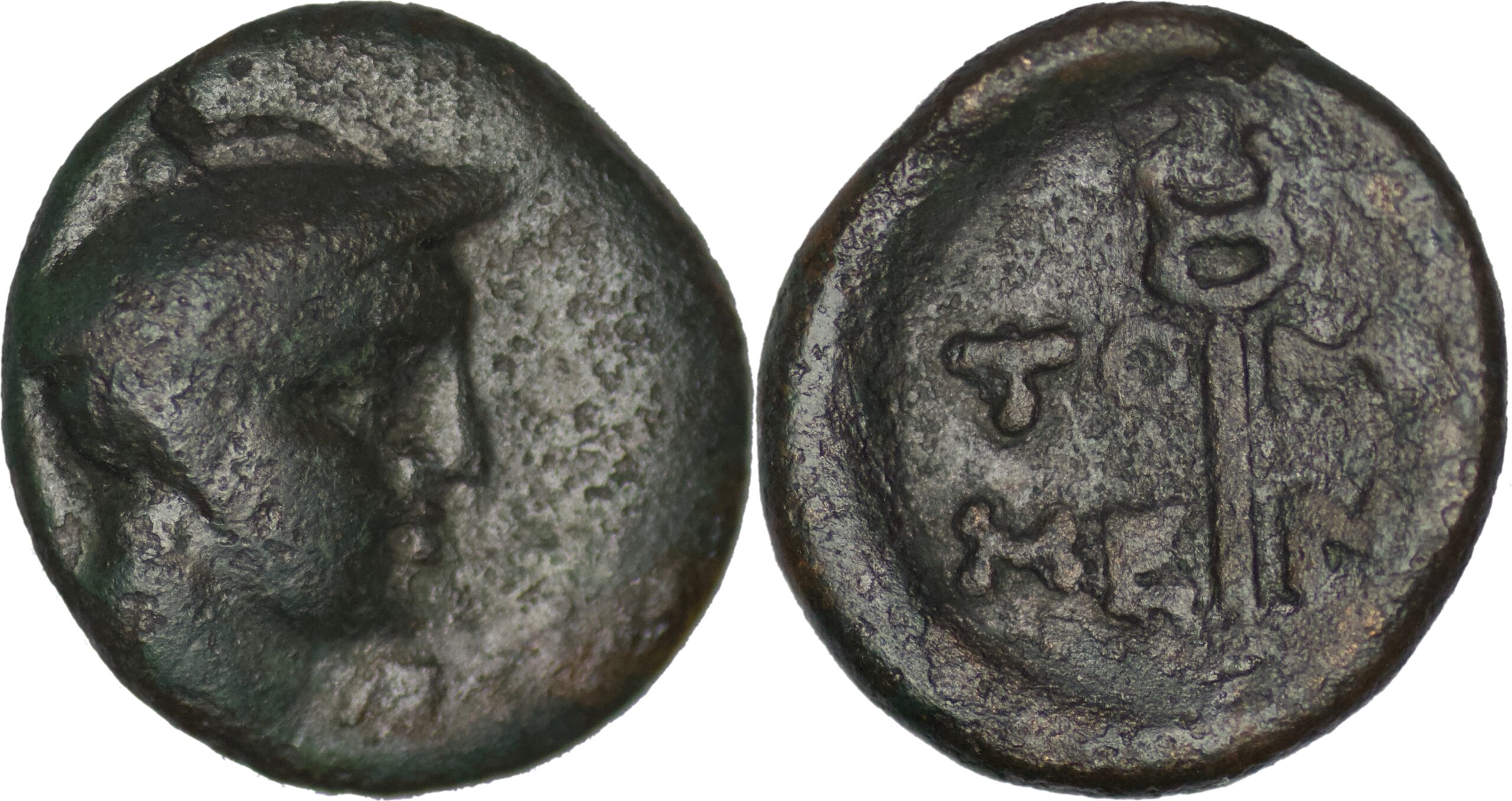 Moesia. Istros. Tomis.(1st-2nd century AD), Æ (2.65g/ 19mm). Overstruck on an uncertain type. Countermark: TOM