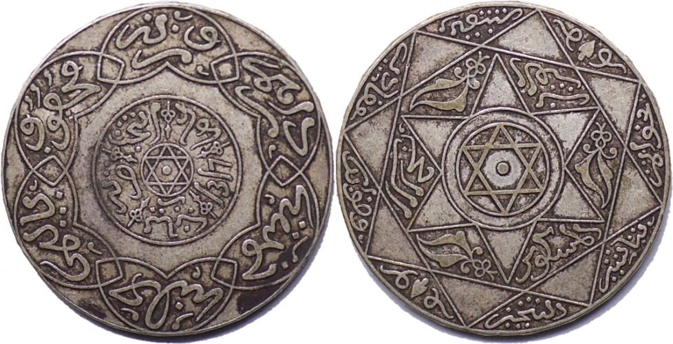 Morocco. AR 5 Dirhams. 1317 d.H. (1899 AD). ABD AL-AZIZ. PARIS.