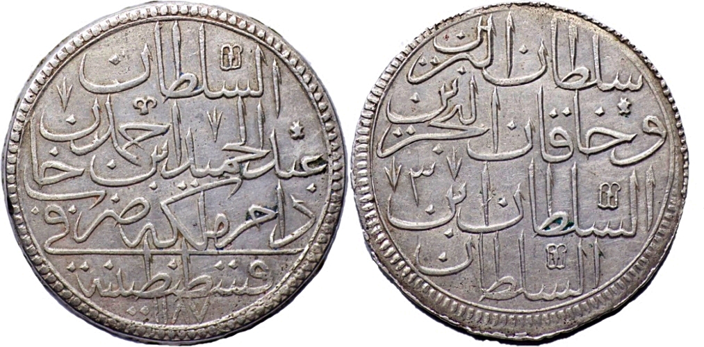 Ottoman: ABD AL-HAMID I. IBN AHMAD III., 1187-1203 AH. / 1774-1789 AD. 2 Zolota (Altmislik) 1187, regnal year 3