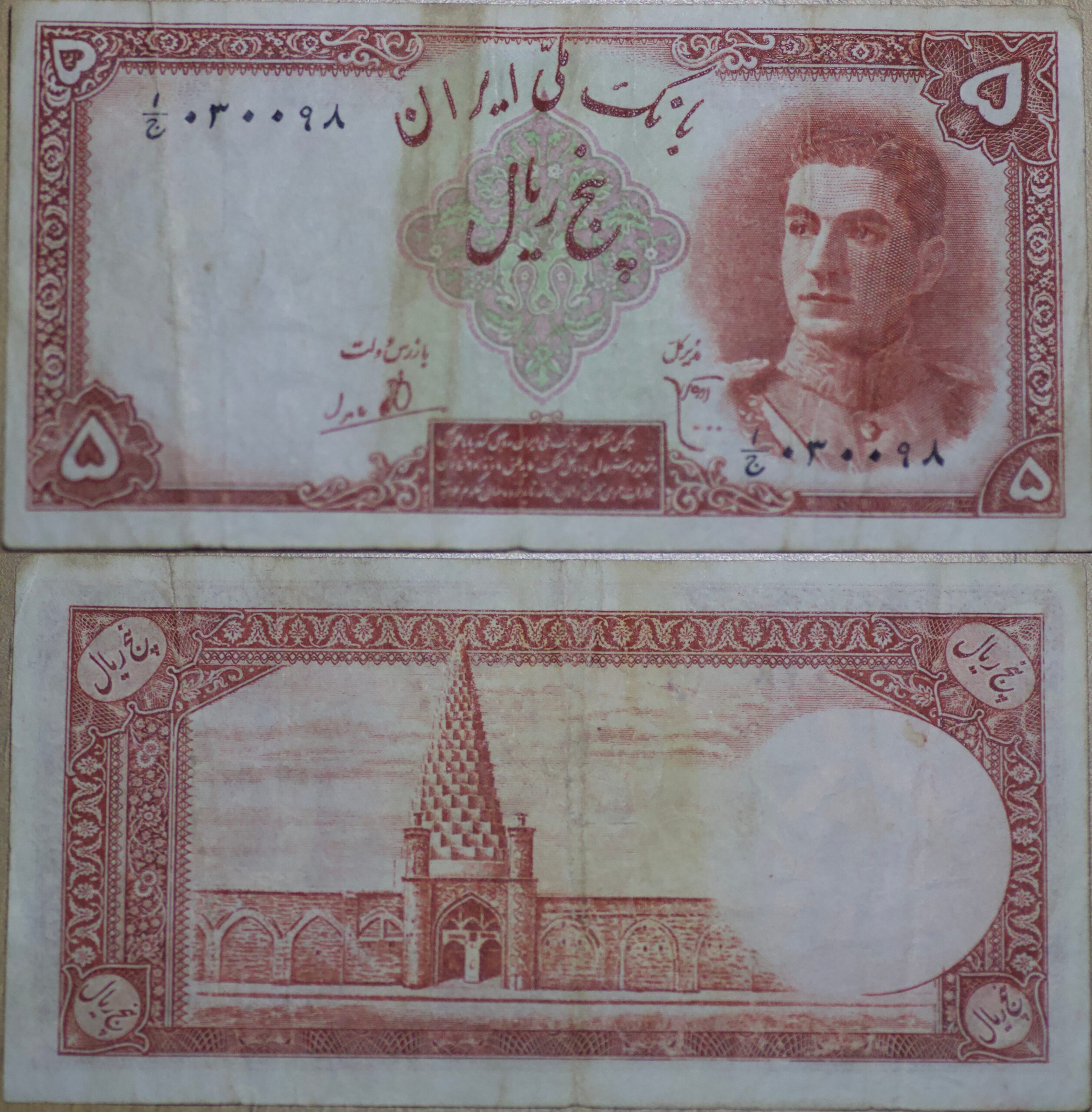 Pahlavi. Mohammad Reza Shah (1941-1979). Bank Meli 5 Rials. 1944