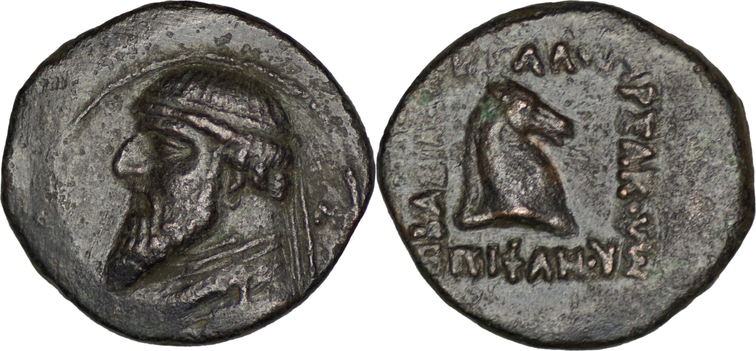 Parthian Empire. Mithradates II (121-91 BC). AE Chalkon. Rhagae mint