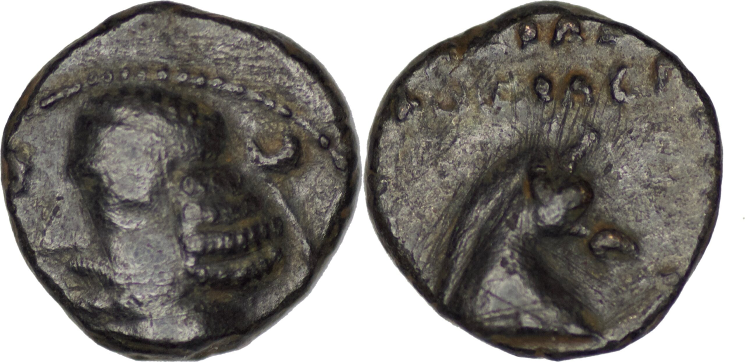 Parthian Empire. Orodes II (circa 57-38 BC). AE Dichalkon. Ekbatana