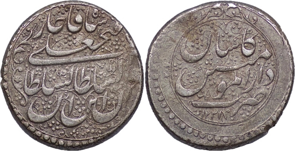Qajar, Fath ‘Ali Shah, AH 1212-1250 (AD 1797-1834). AR Rial. Dar al-mu’minin Kashan mint. Dated AH 1228