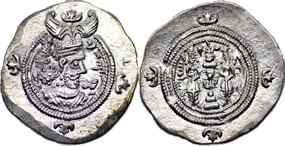 Sasanian Empire. Khusrau II AD 590-628 . AR Drachm, BISH (Bishapur) Mint, Date 21.