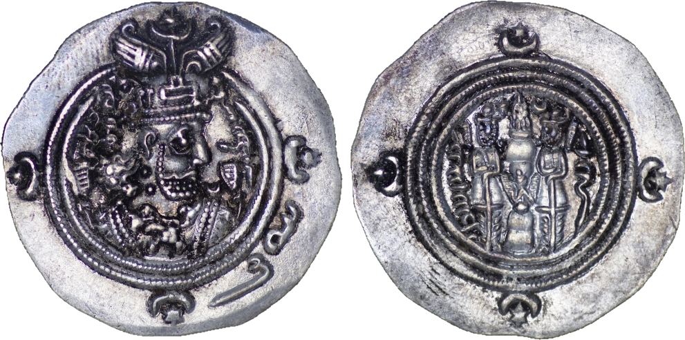 Sasanian empire. Khusrau II. AD 590-628. AR drachm (4.14g/30mm), WYH mint, Year 26, Göbl II/3, Extremely fine