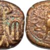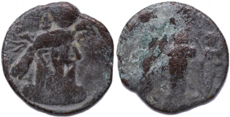 SASANIAN EMPIRE: Narseh, 293-303, AE pashiz (2.30g/ 16mm), Göbl II/2, king ‘s bust right, wearing crown with arcades and three floriate branches // standard reverse, VG-F, Rare