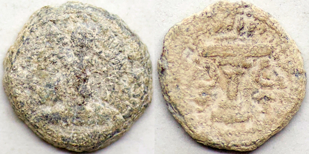 SASANIAN EMPIRE. Shapur II (AD 309-379). Lead Pashiz, (3.65g/ 16mm). Bust of Shapur II right, wearing diadem and mural crown with korymbos/ Fire altar |(same as Ardashir I reverse type), Fine. Very rare.