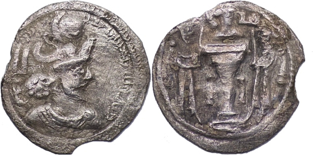 SASANIAN EMPIRE. Vahram (Bahram) IV, AD 388-399. AR drachm (2.79g/ 23mm). Crowned bust right / Fire altar flanked by attendants.