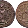 SASANIAN EMPIRE, Vahram V (Varahran), AD 420-438, AE Pashiz (1.28 gm; 18mm). Vahram’s bust right, Scripts to right /fire-altar & two attendants. Gobl I/1. Well struck on a nice flan. Choice aEF. Very rare.