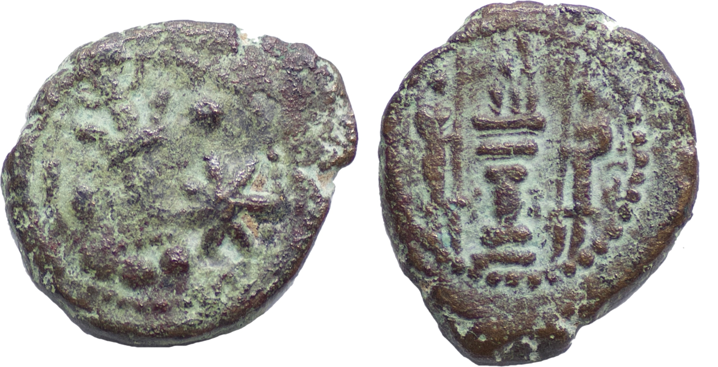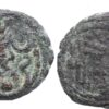 SASANIAN EMPIRE. Yazdgard II. A.D. 438-457. Æ Pashiz (1.90g/ 13mm). Bust of Yazdgard II right; Star and pellet to right / Fire altar with two attendants. Very rare. Very fine.