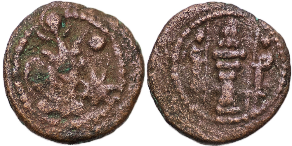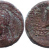 Sasanian Empire. Yazdgard II. A.D. 438-457. AE Pashiz (1.26g/ 13mm). Bust of Yazdgard II right; pellet and star to right / Fire altar with two attendants. Very fine.
