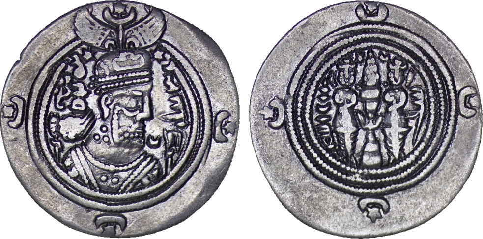 Sasanian Kingdom. Khusrau II AD 590-628 . AR Drachm (3.10g/ 28mm), SHY (Shiraz) Mint, Date 29, Edge clipped probably after Muslim conquest?, choice very fine