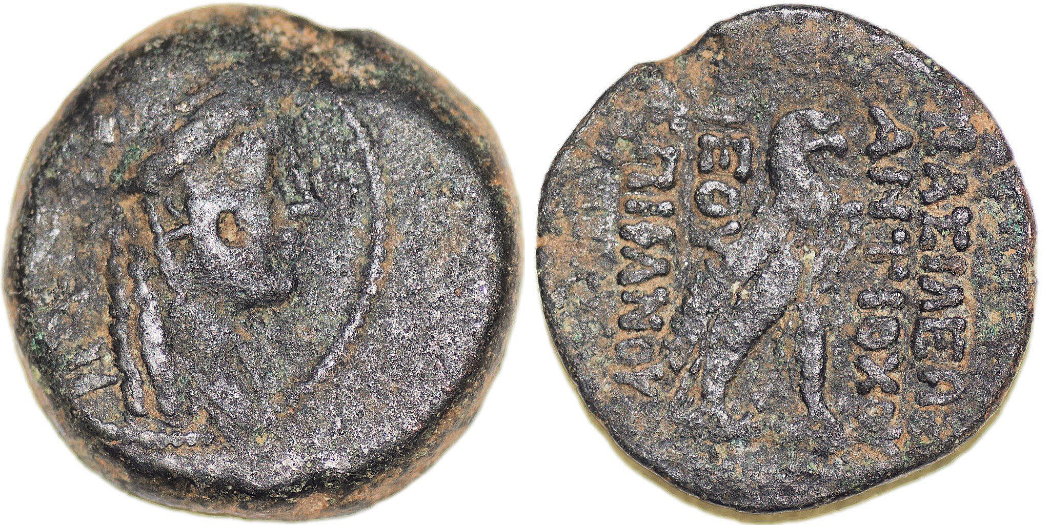 Reverse: BAΣIΛEΩΣ ANTIOXOY / ΘEOY EΠIΦANOYΣ, Eagle standing right on thunderbolt.